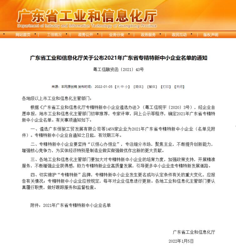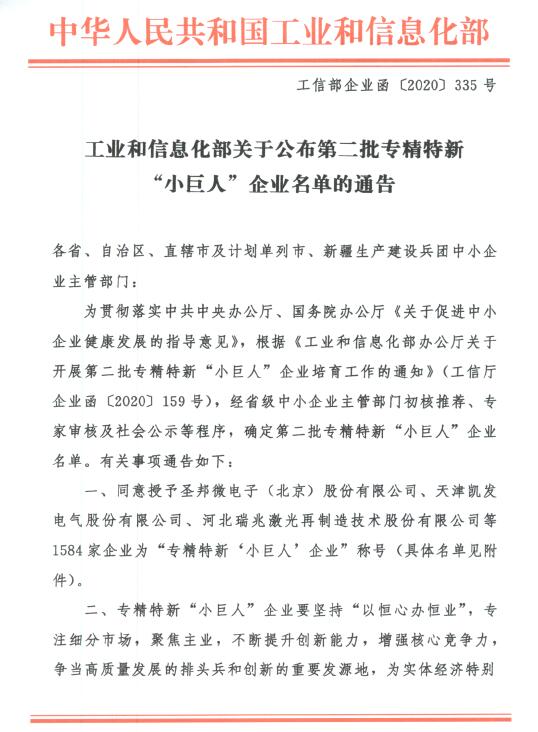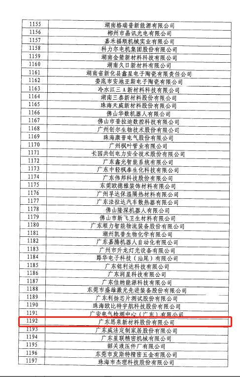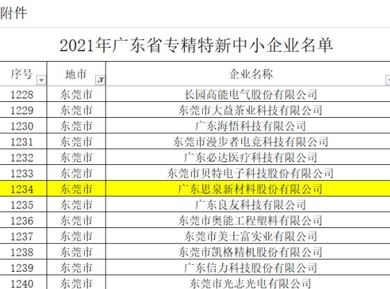 2020年12月,根据中华人民共和国工业和信息化部发布的通告,思泉新材获得第二批专精特新“小巨人”企业的称号。