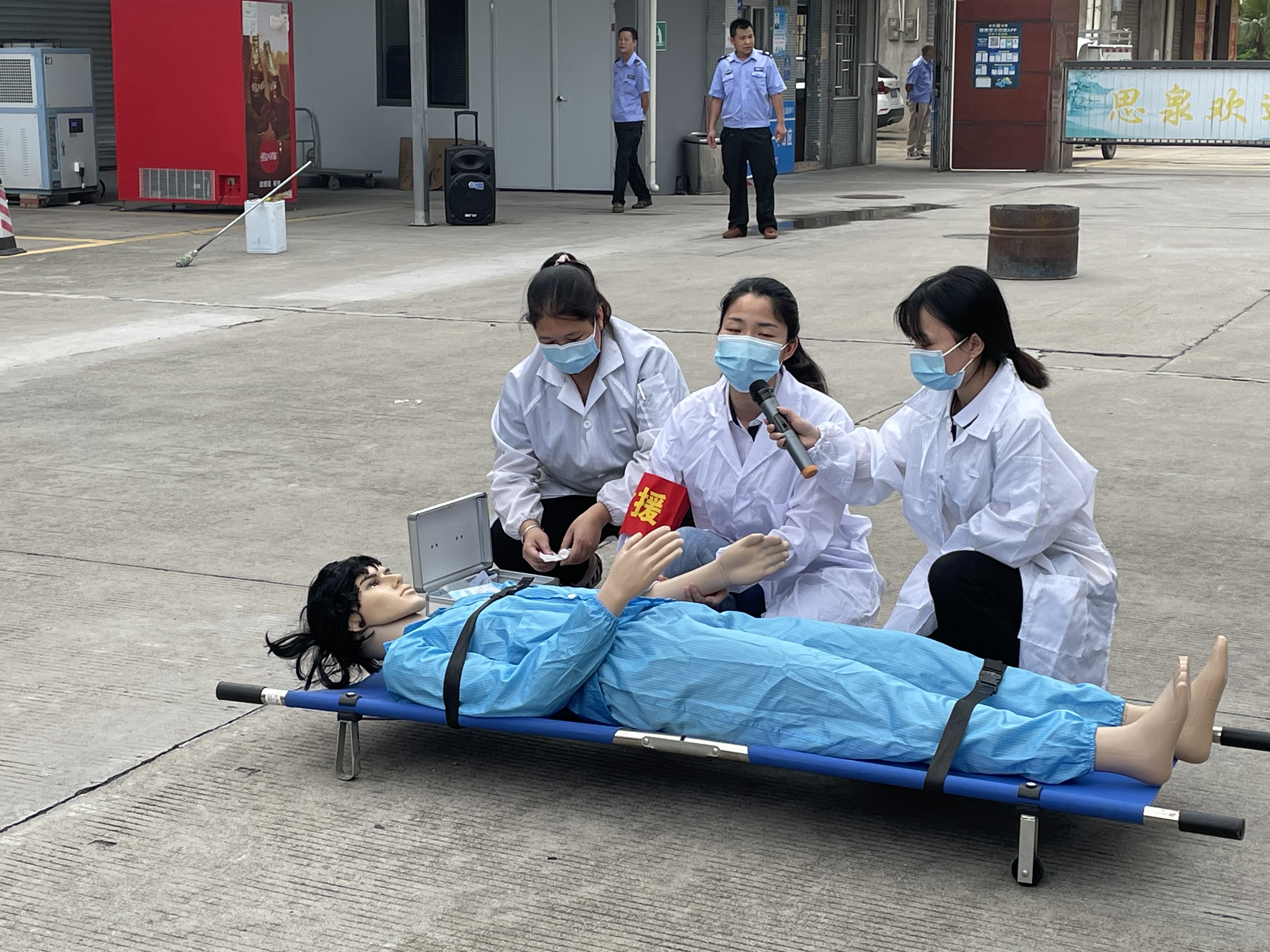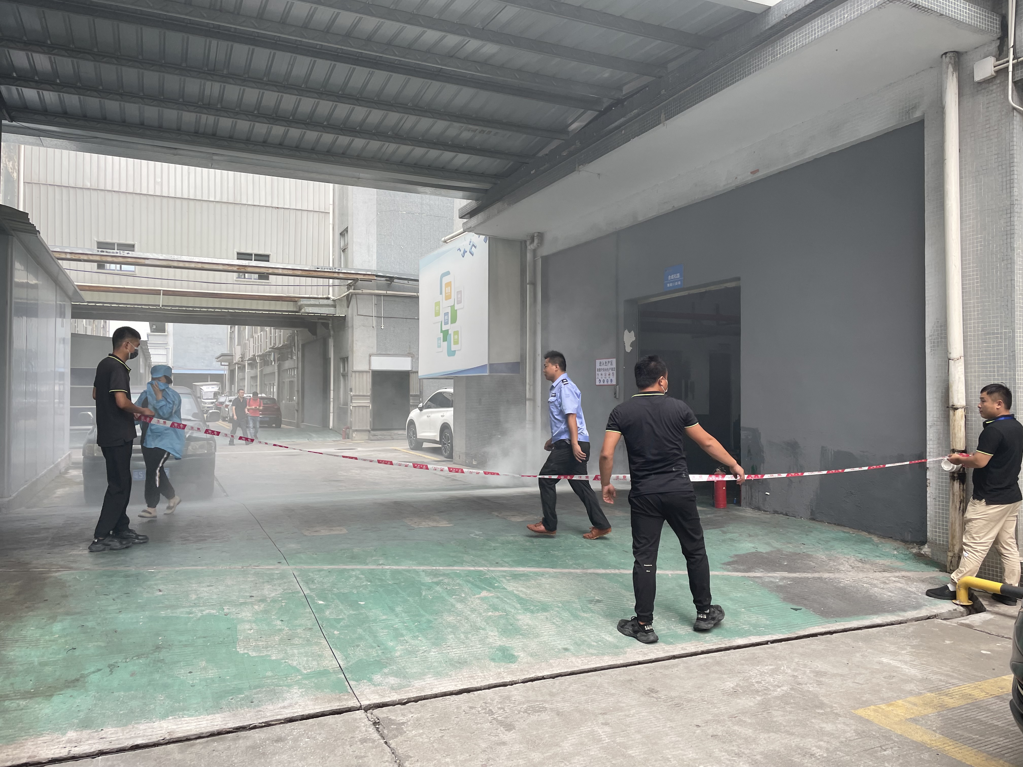本次模拟火点设在厂房2栋1楼,警笛响起后员工第一时间启动火灾应急处置预案。 各单位迅速组织人员疏散撤离,到达指定地点集合,清点人数。