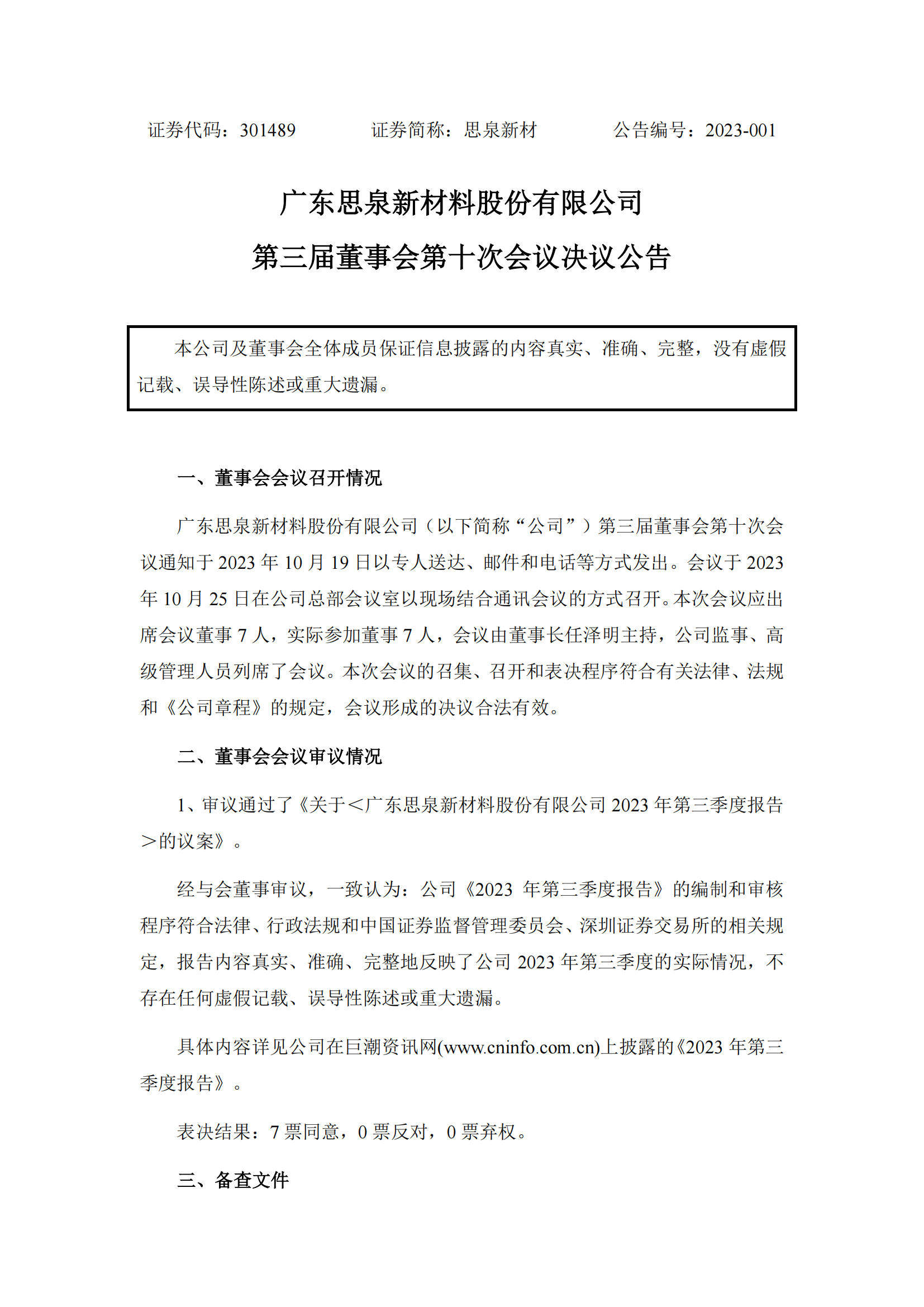 思泉新材上市公告书