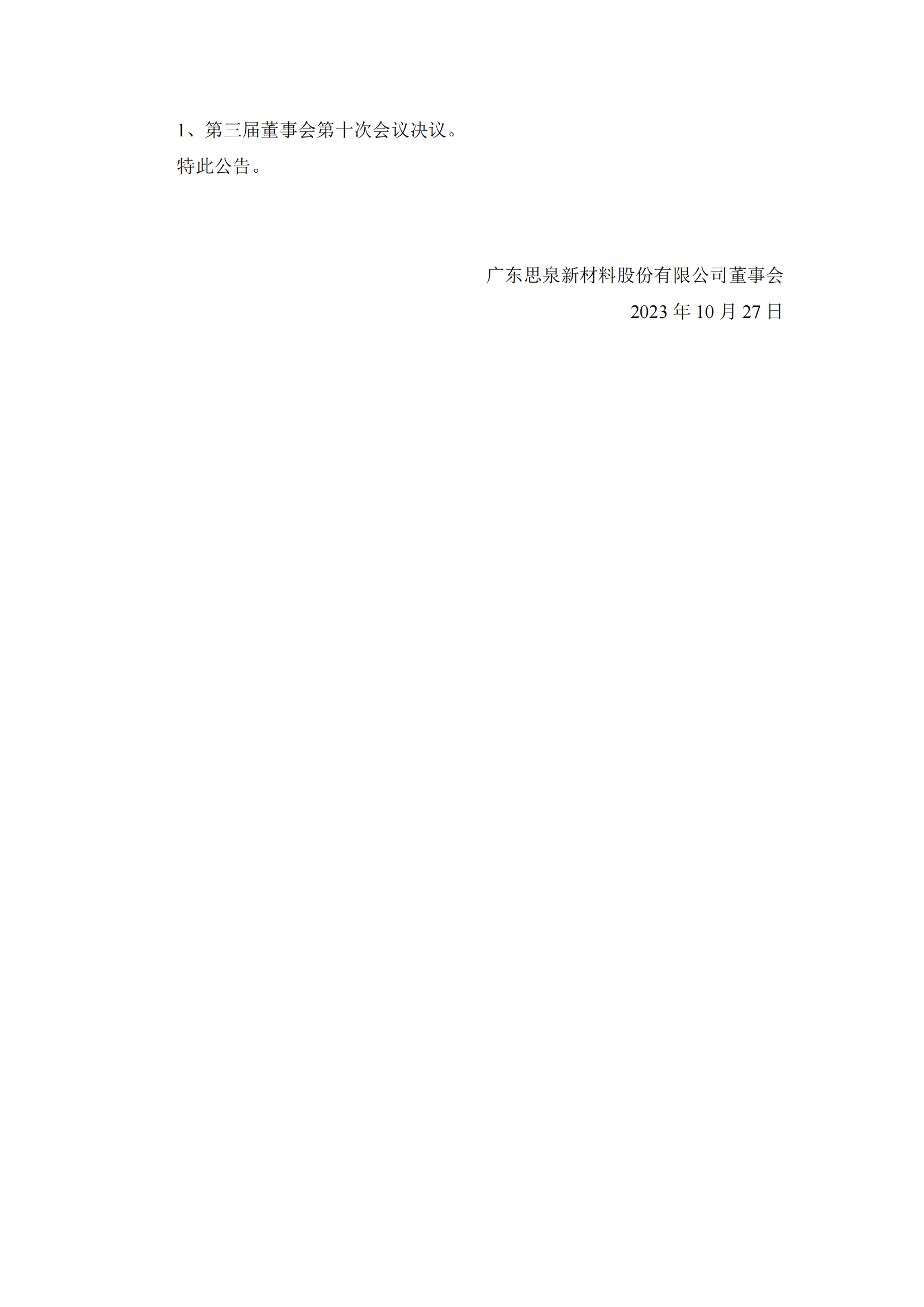 第三届董事会第十次会议决议公告