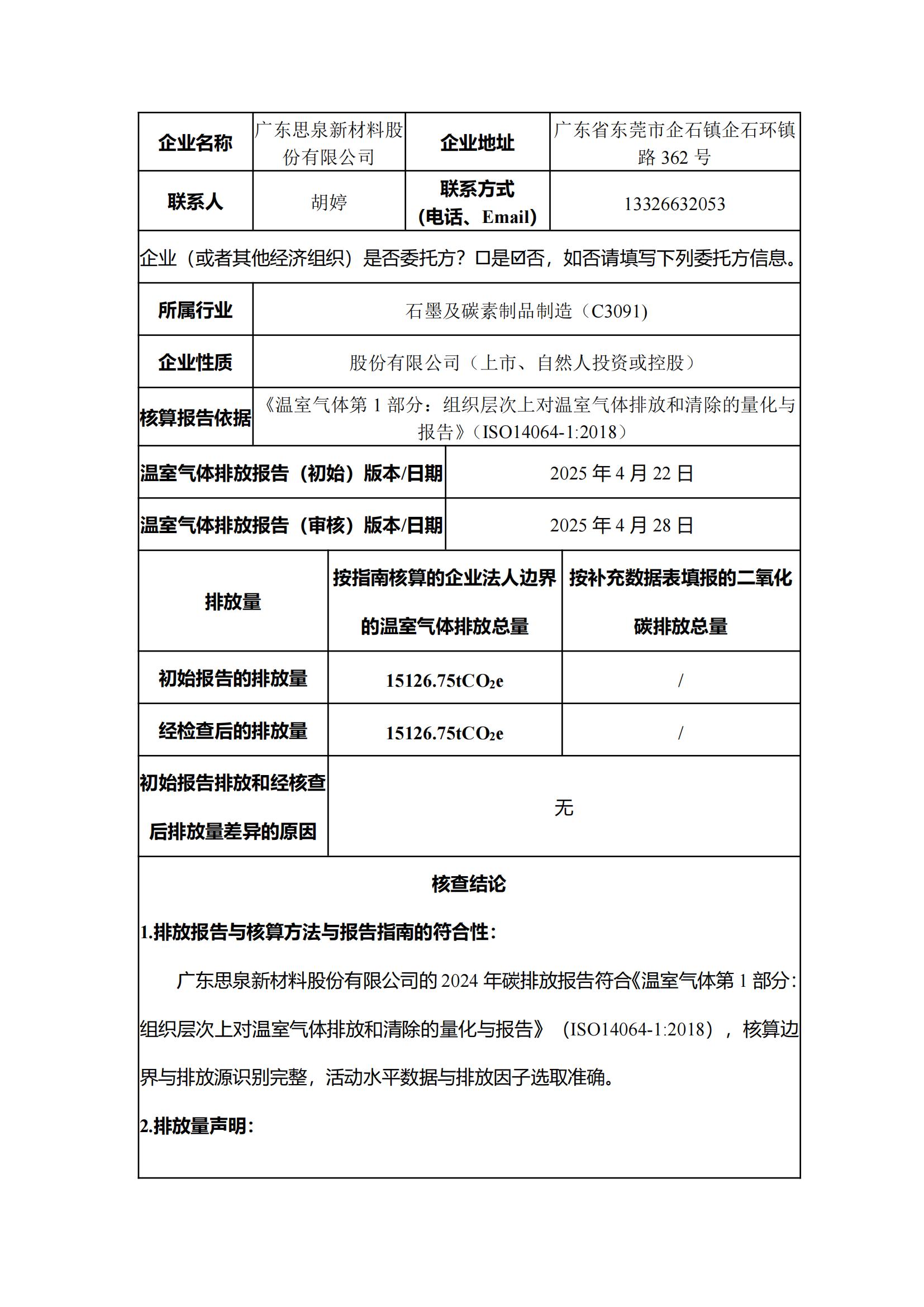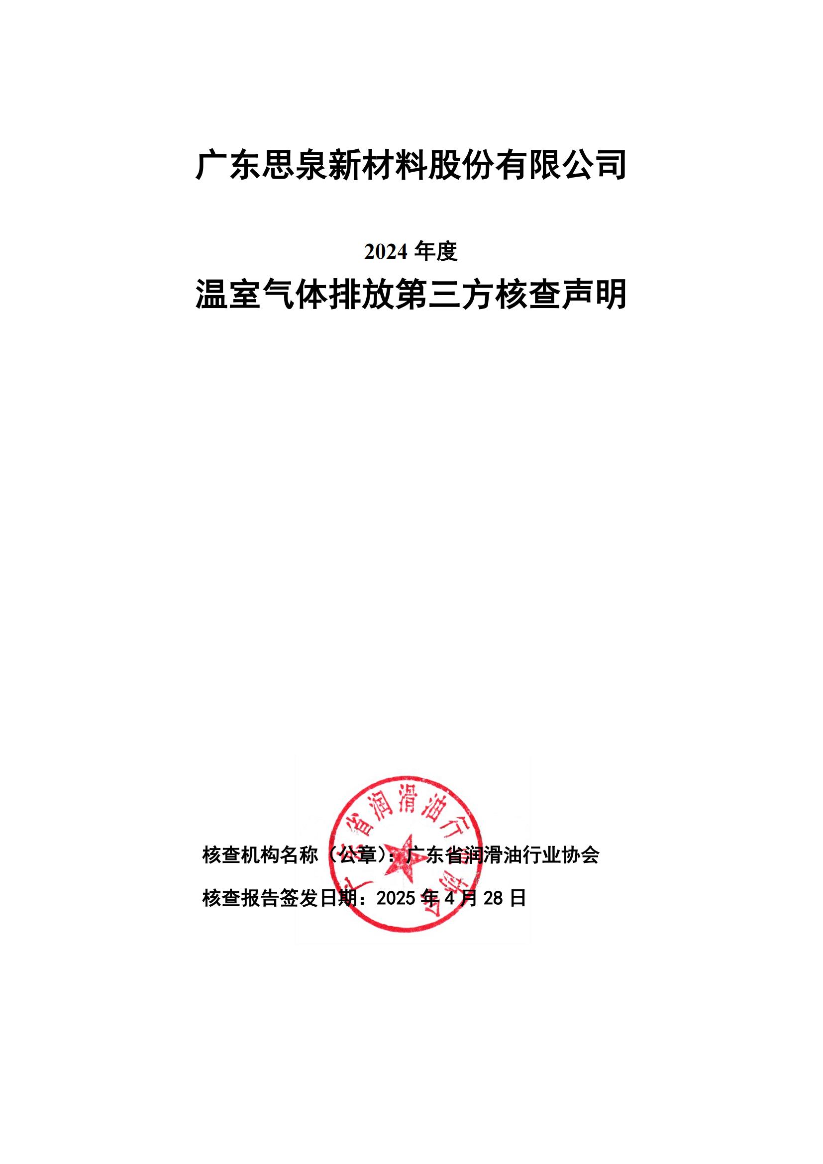 思泉新材——20250504温室气体核查声明